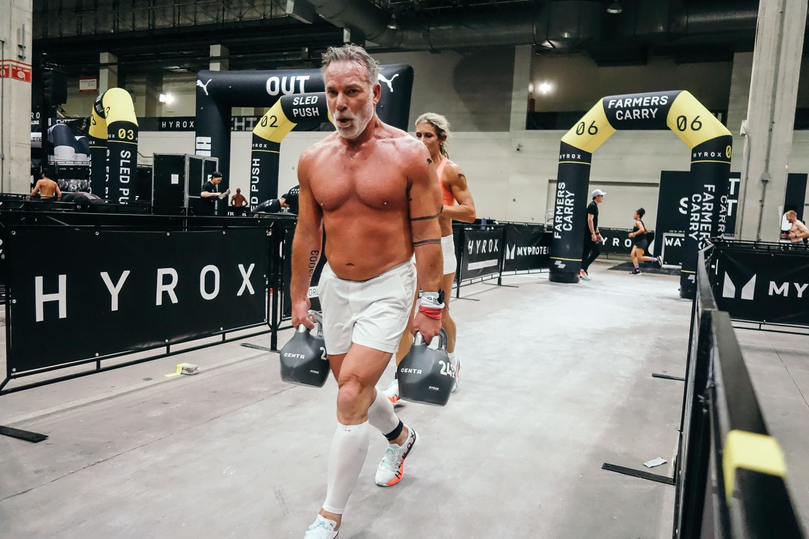 The HYROX format is a hybrid fitness race that consists of eight 1-kilometer (km) runs,each followed by a functional exercise station.